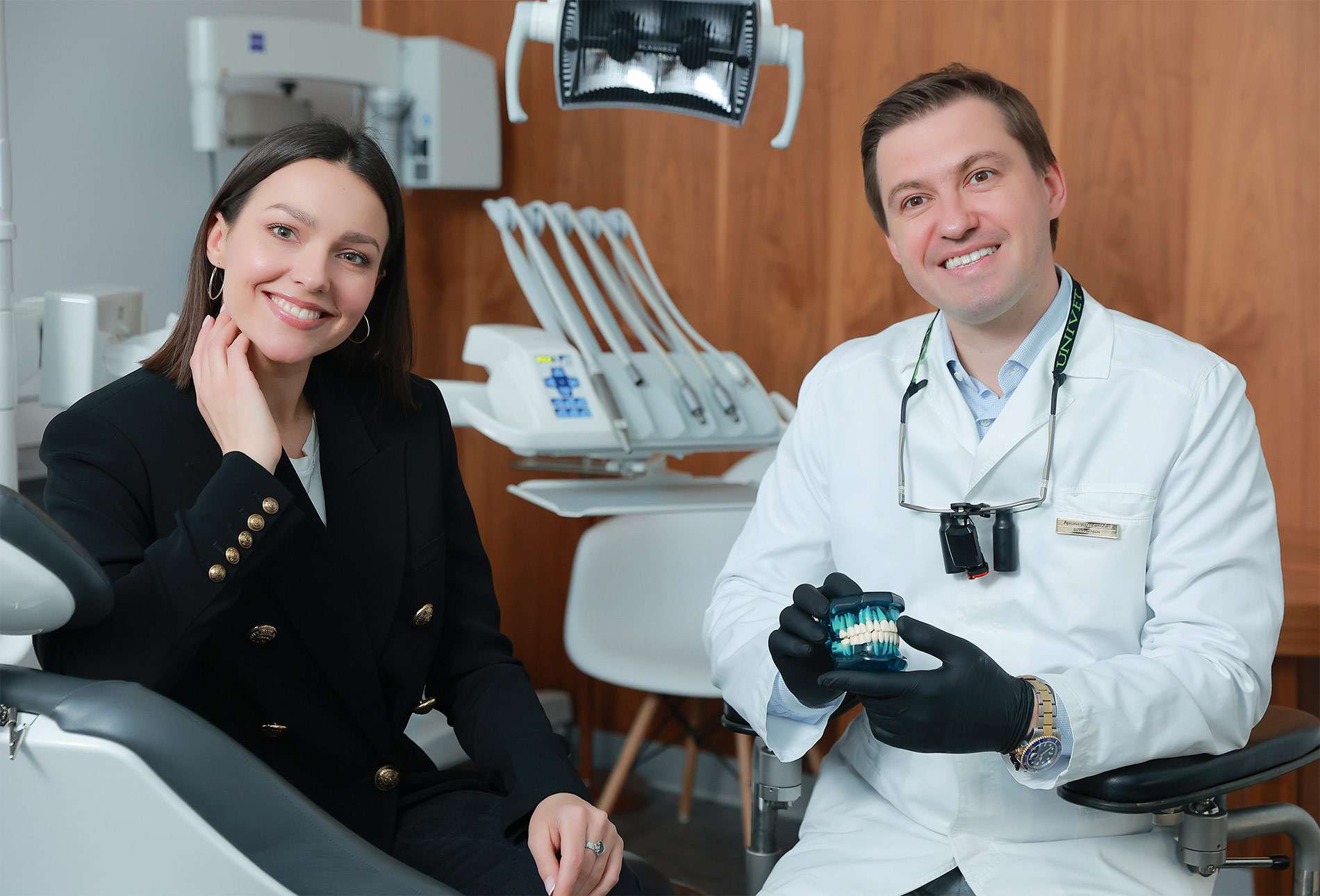 The author of the technique of installing veneers without tooth facing is our clinic’s physician-in-chief Artavazd Henrykovich Manukyan, a qualified specialist in aesthetic dentistry, implantology, orthopedics, an honorary member of the EAEU and the Eurasian Association of Osteology, Regeneration and Osseointegration (EAORO).